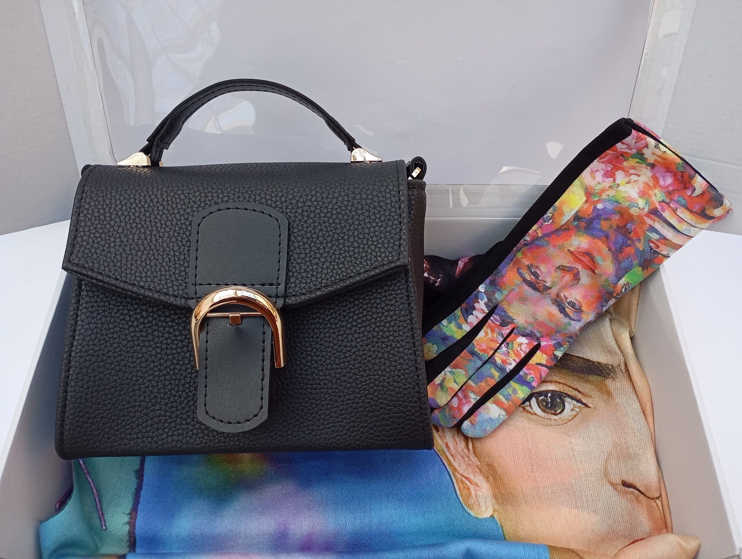Poklon set se satoji od: torbe , rukavica , šal i poklon kutije